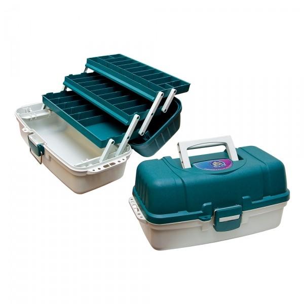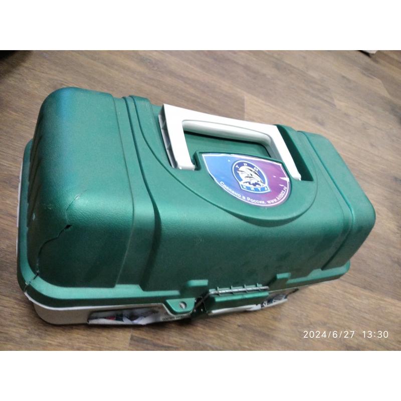 Ящик имеет 3 выдвижных лотка, включающих в себя перегородки для создания ячеек разных размеров. В этом ящике так же имеется вместительное дно, позволяющее хранить много нужного, в том числе катушки для удочек, спиннингов. Выполнен из материала, стойкого к воздействию силиконов и масел.
