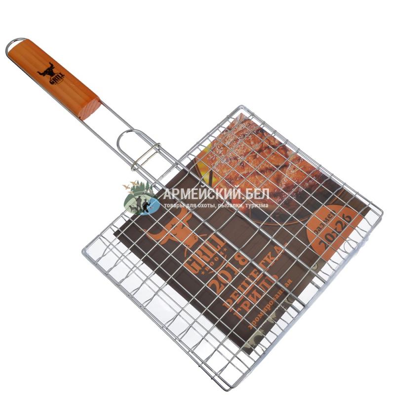 Решетка оснащена удобной деревянной ручкой.
