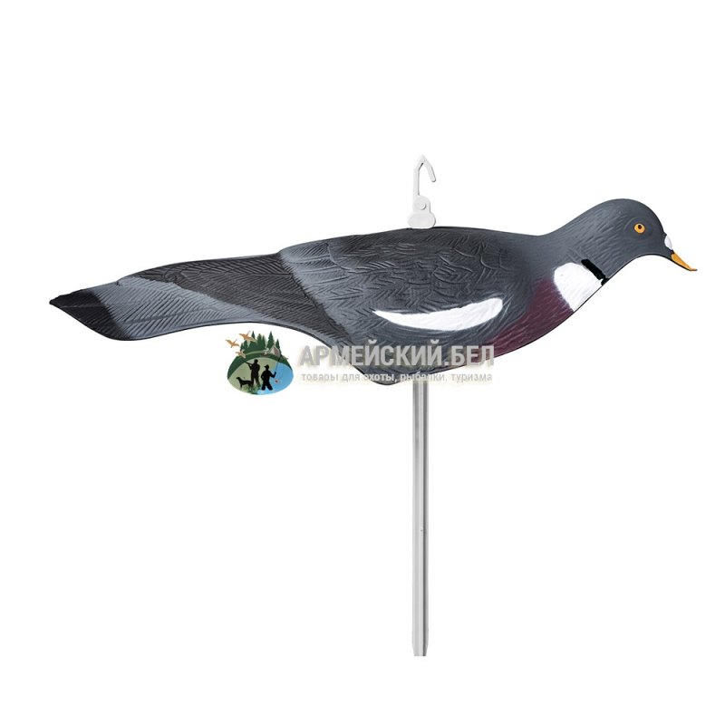 Два отверстия в теле полукорпусного голубя дают возможность выбрать угол для установки и определить позу голубя активный или кормящийся.